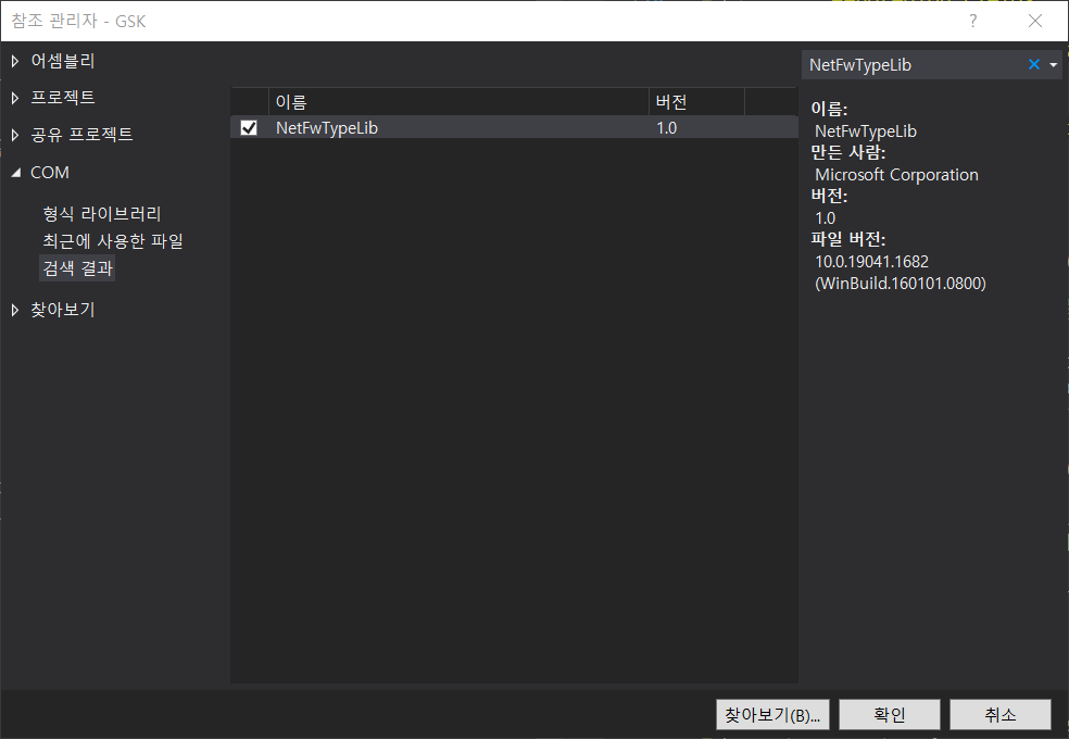 일단 참조에 NetFwTypeLib을 추가해준다.